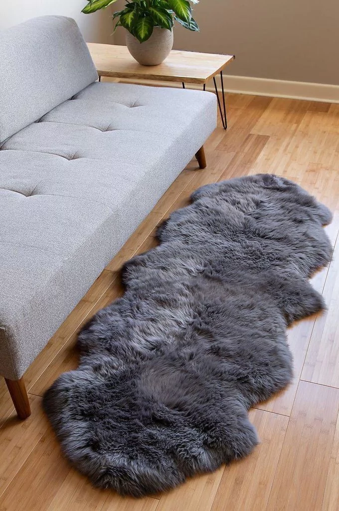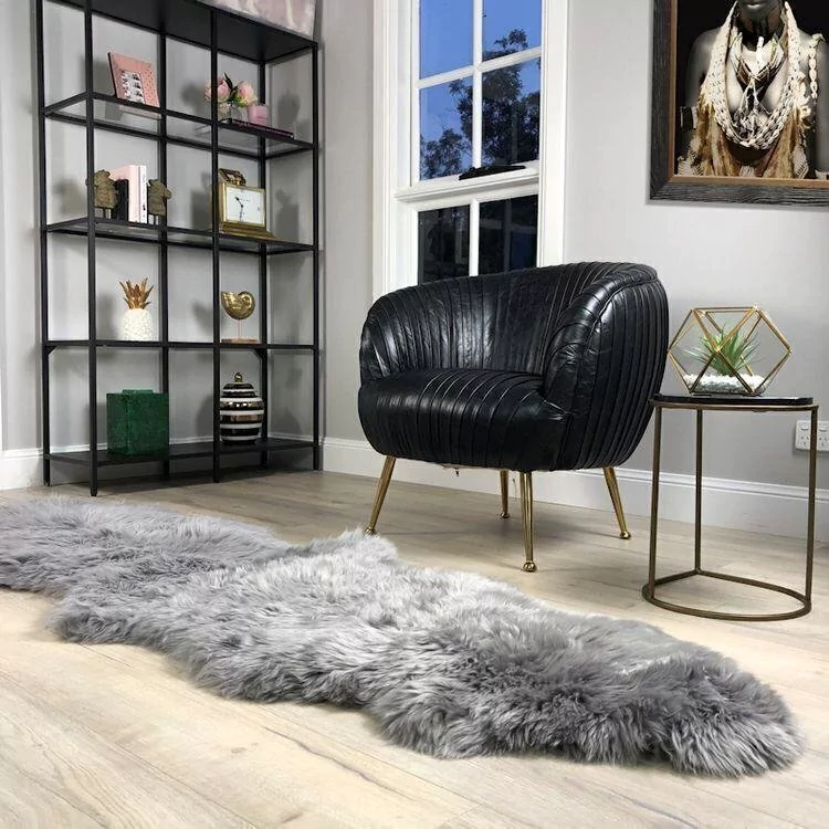 Confeccionado com recortes quadrados de pele ovina legítima nos tons de grafite. Tapete com forro 100% algodão e e com tratamento especial para decoração. Certificação ISO 9001 de qualidade internacional.