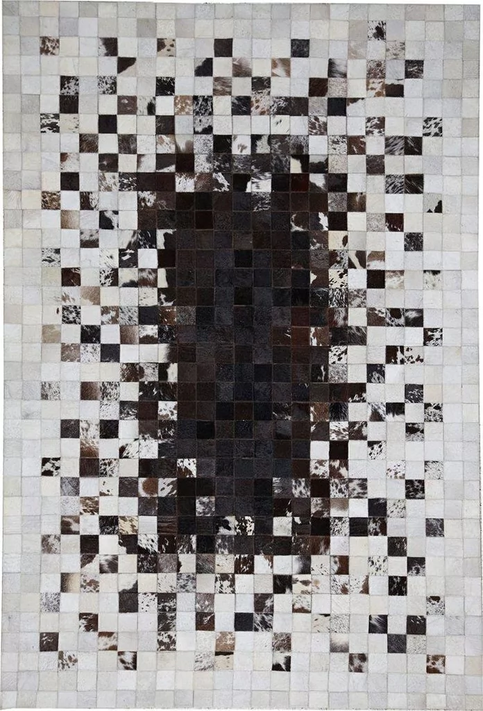 Confeccionado com recortes quadrados de couro legítimo natural em tons preto, saltpepper, marfim e branco. Tapete forrado, antiderrapante , impermeável e com tratamento especial para decoração.