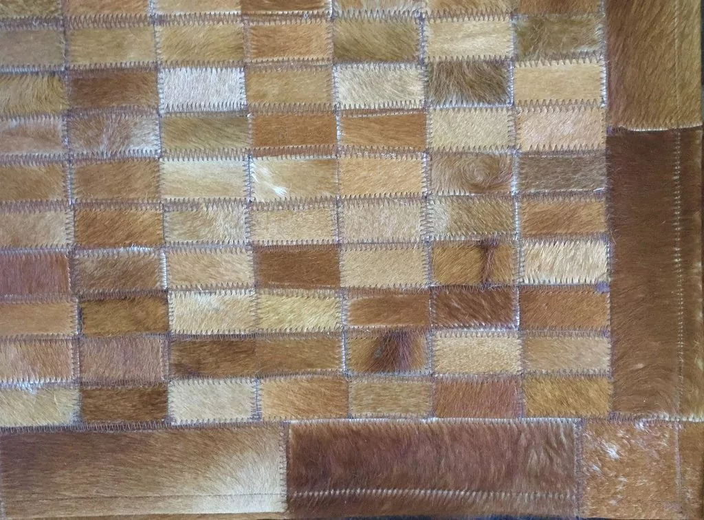 Tapete de couro confeccionado com retalhos de couro legítimo natural em tons de bege. Tapete forrado, antiderrapante , impermeável e com tratamento especial para decoração.
