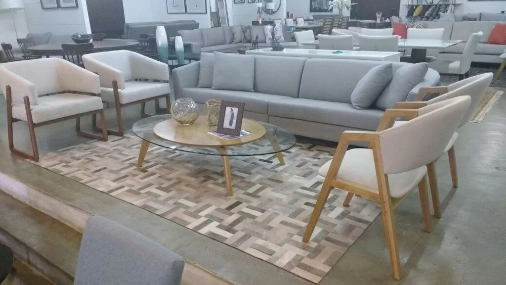 Confeccionado com recortes quadrados de couro legítimo natural em tons cinza, marfim. Tapete forrado, antiderrapante , impermeável e com tratamento especial para decoração.