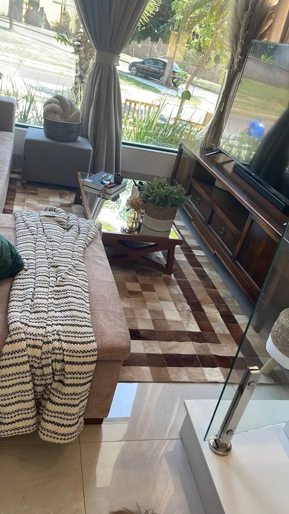 Confeccionado com recortes quadrados de couro legítimo natural em tons de caramelo, bege escuro, bege, gris. Tapete forrado, antiderrapante , impermeável e com tratamento especial para decoração.