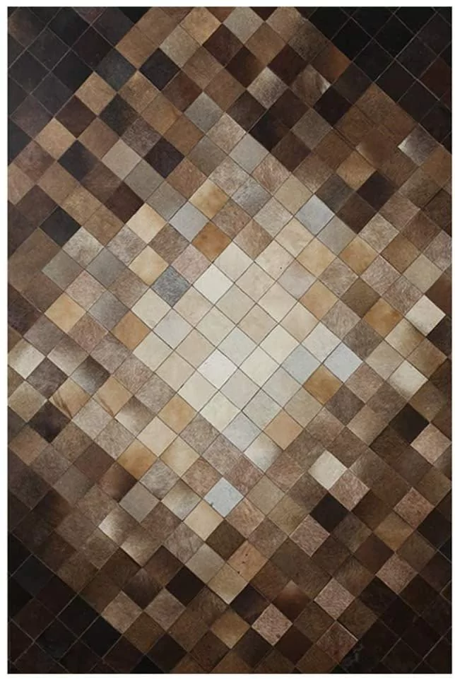 onfeccionado com recortes quadrados de couro legítimo natural em tons marrom e bege. Tapete forrado, antiderrapante , impermeável e com tratamento especial para decoração.