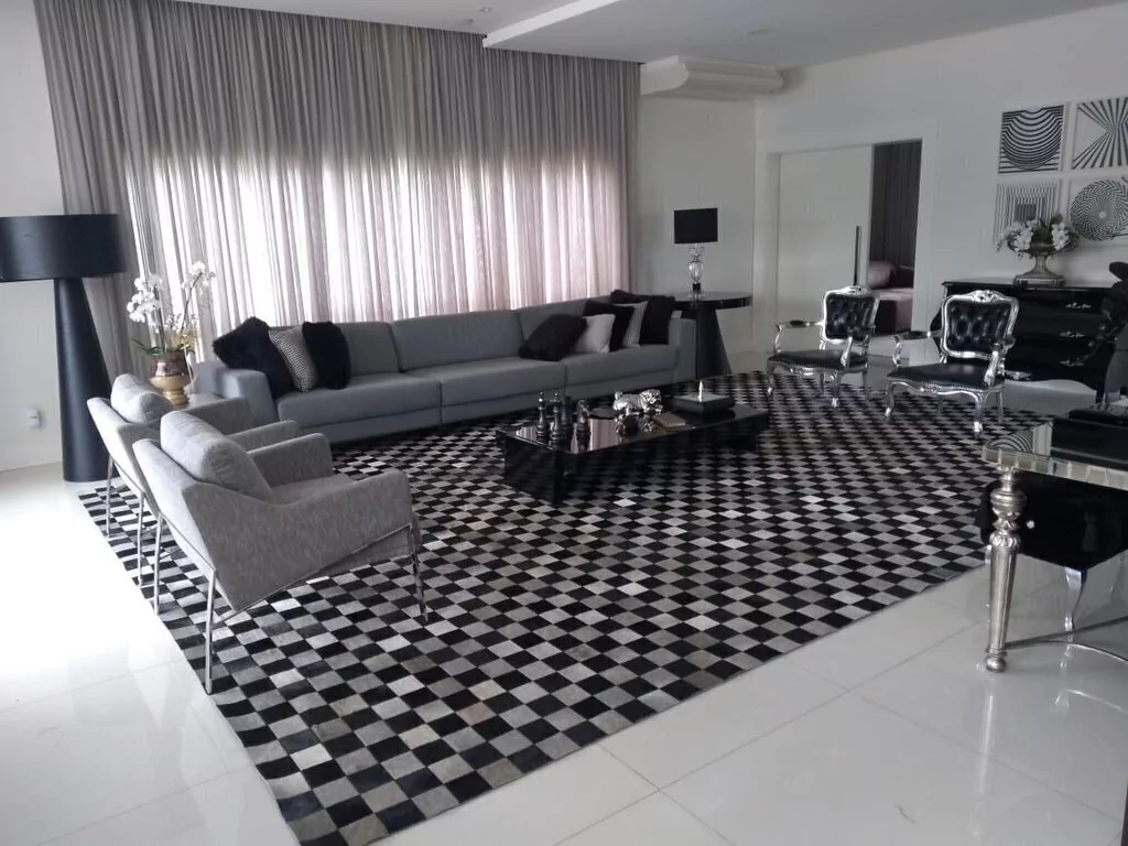 Confeccionado com recortes quadrados de couro legítimo natural em tons preto e cinza. Tapete forrado, antiderrapante , impermeável e com tratamento especial para decoração.