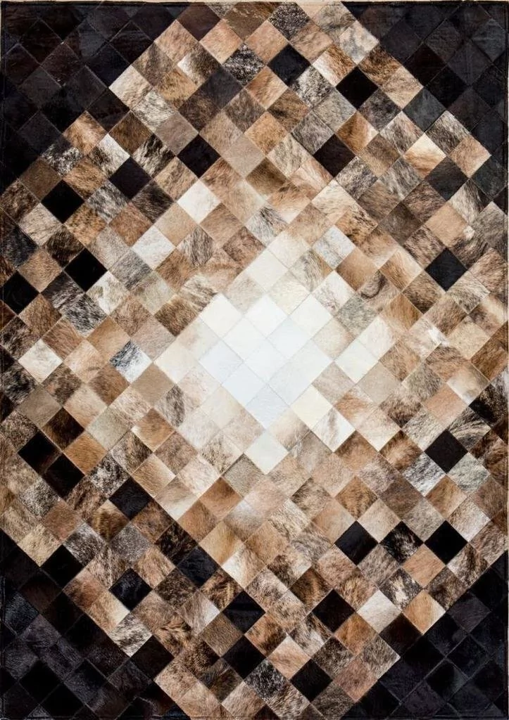 Confeccionado com recortes quadrados de couro legítimo natural em tons preto, marrom, café, bege, creme, marfim e branco. Tapete forrado, antiderrapante , impermeável e com tratamento especial para decoração.