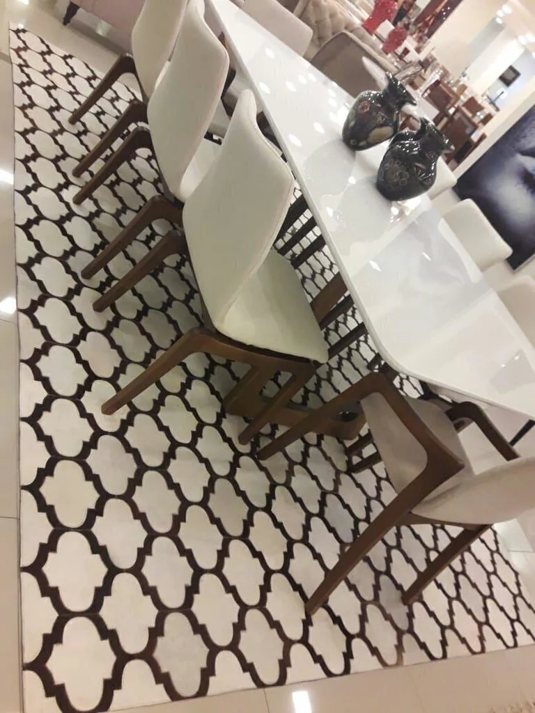 Confeccionado com recortes geométricos de couro legítimo natural em tons branco e preto. Tapete forrado, antiderrapante , impermeável e com tratamento especial para decoração.