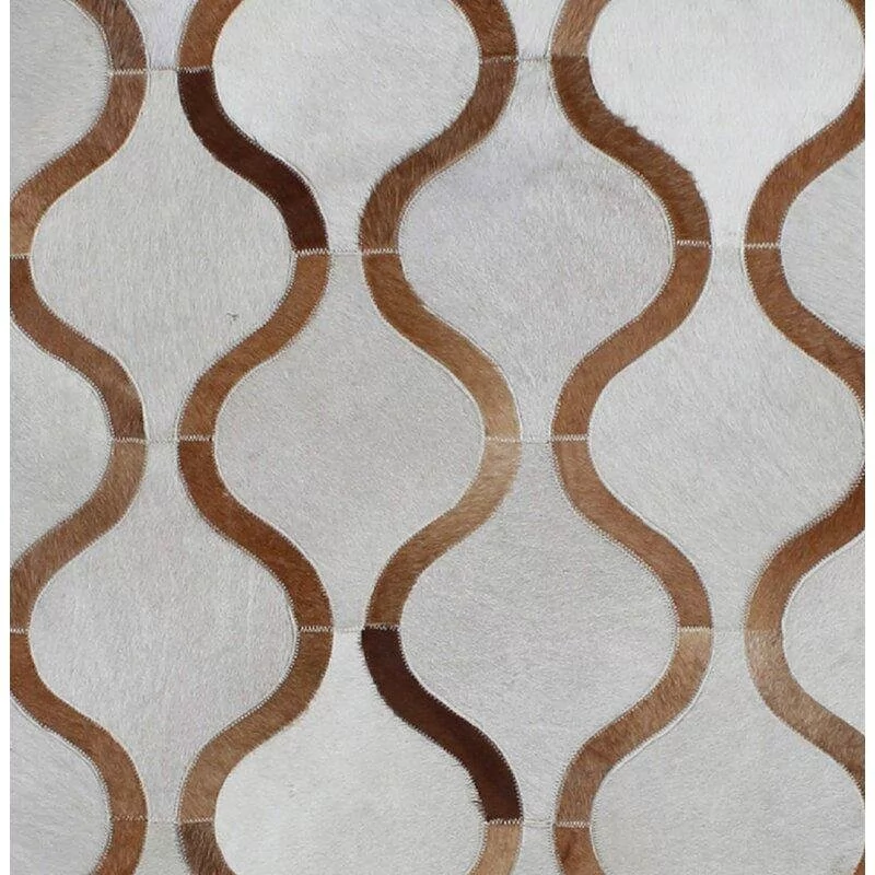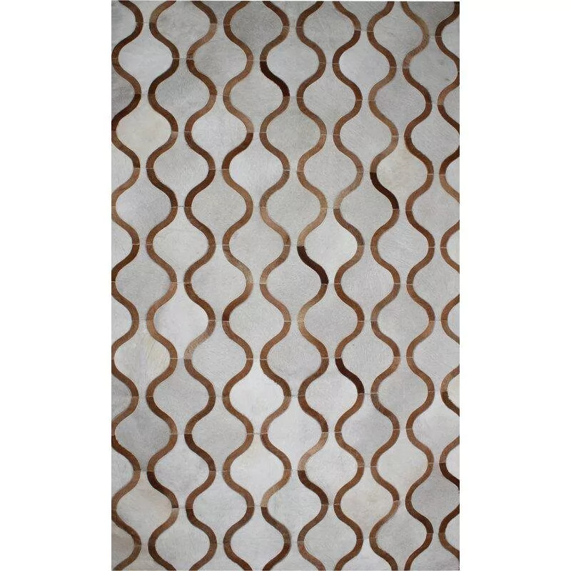 Confeccionado com recortes geométricos de couro legítimo natural em tons de bege, creme e offwhite. Tapete forrado, antiderrapante , impermeável e com tratamento especial para decoração.