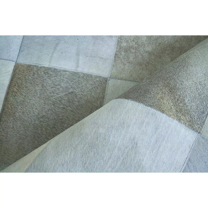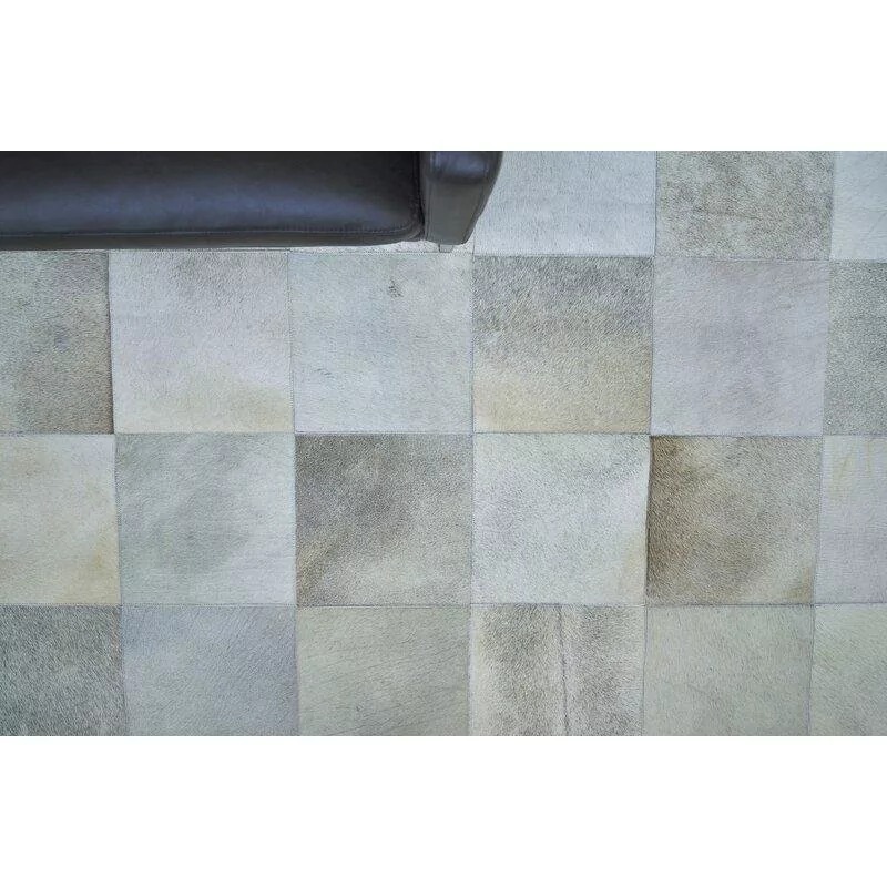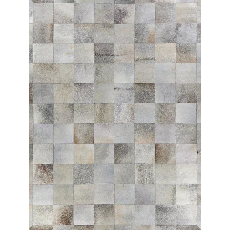Confeccionado com recortes quadrados de couro legítimo natural em tons de cinza e prata. Tapete forrado, antiderrapante , impermeável e com tratamento especial para decoração.