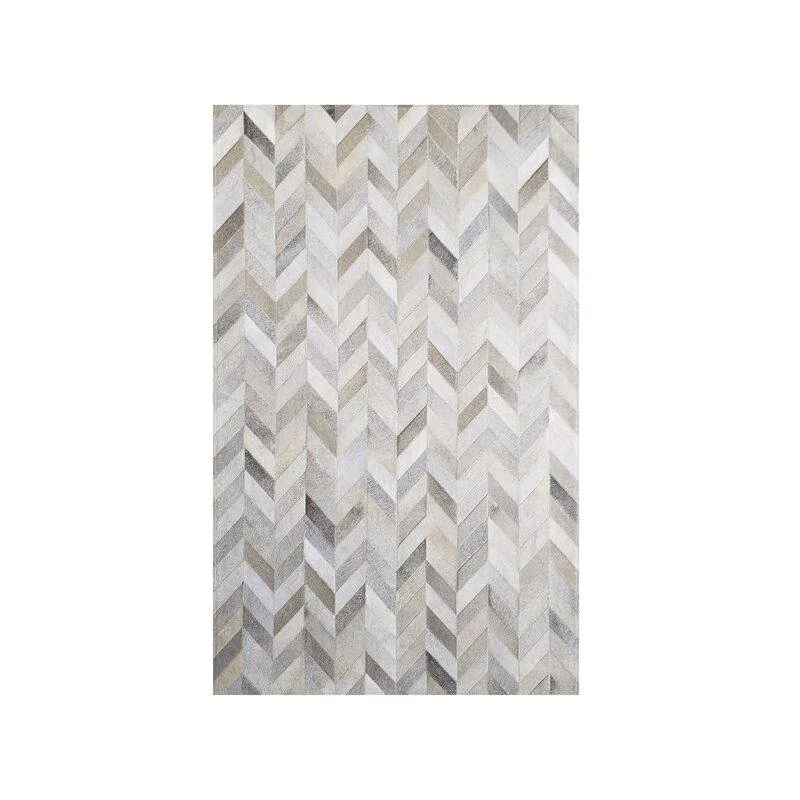 Confeccionado com recortes quadrados de couro legítimo natural em tons de cinza claro, offwhite e marfim. Tapete forrado, antiderrapante , impermeável e com tratamento especial para decoração.