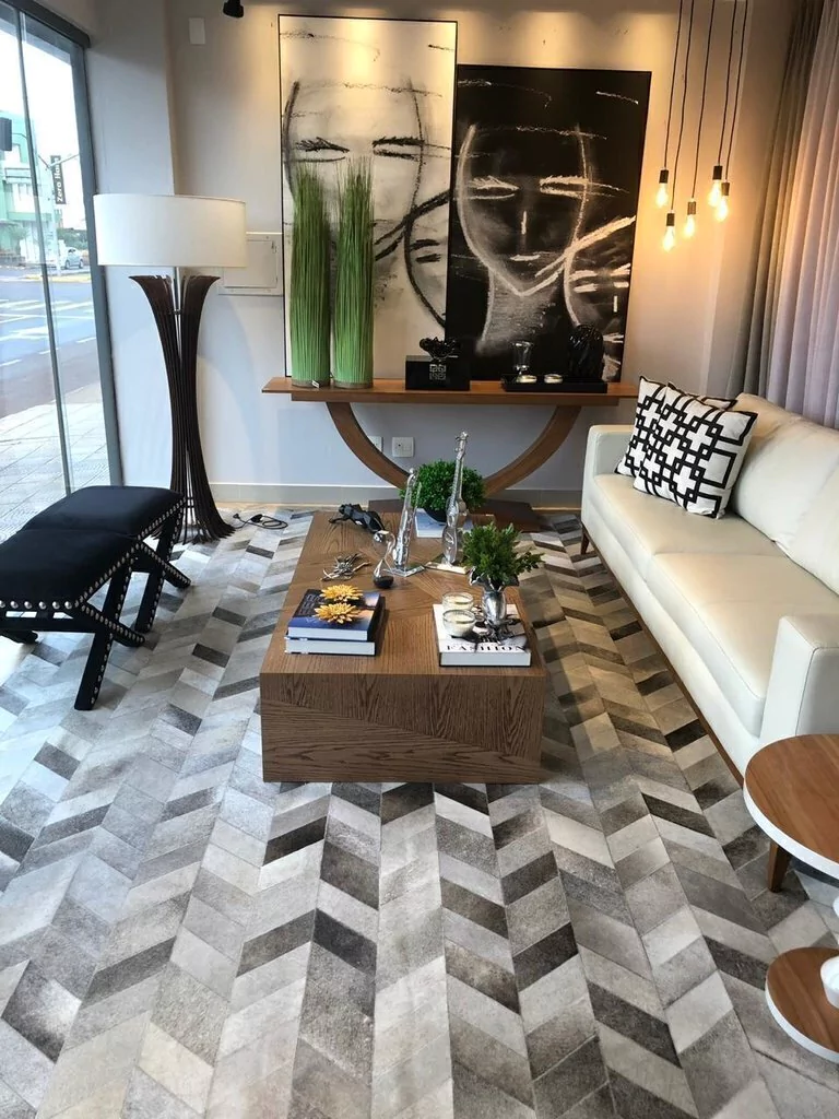 Confeccionado com recortes quadrados de couro legítimo natural em tons cinza escuro, cinza claro, preto e branco. Tapete forrado, antiderrapante , impermeável e com tratamento especial para decoração.
