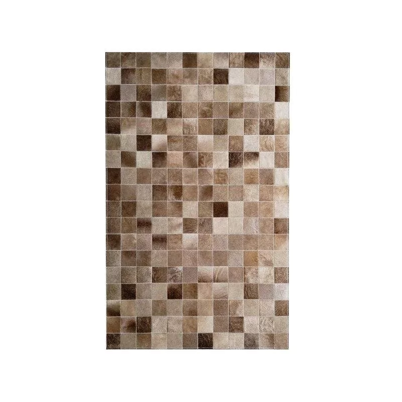 Tapete de Couro confeccionado com recortes quadriculados de couro legítimo natural em tons de bege. Tapete forrado, antiderrapante e com tratamento especial para decoração.
