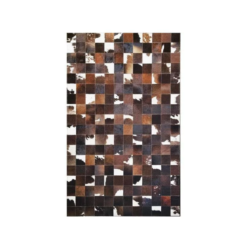 Tapete de Couro confeccionado com recortes quadriculados de couro legítimo natural em tons de branco e marrom. Tapete forrado, antiderrapante e com tratamento especial para decoração.