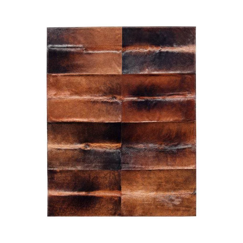Confeccionado com recortes geométricos de couro legítimo natural em tons de marrom. Tapete forrado, antiderrapante , impermeável e com tratamento especial para decoração.