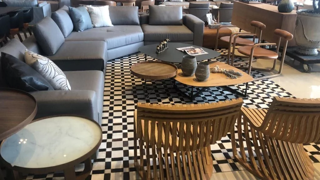 Confeccionado com recortes quadrados de couro legítimo natural em tons preto e branco. Tapete forrado, antiderrapante , impermeável e com tratamento especial para decoração.