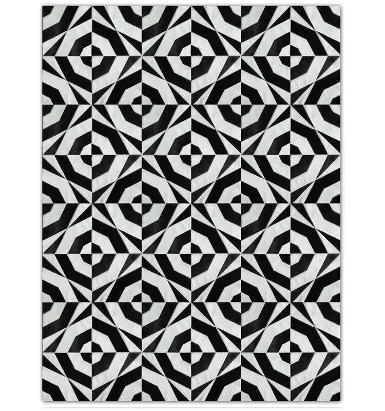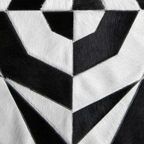 Confeccionado com recortes geométricos de couro legítimo natural em tons preto e branco. Tapete forrado, antiderrapante , impermeável e com tratamento especial para decoração.