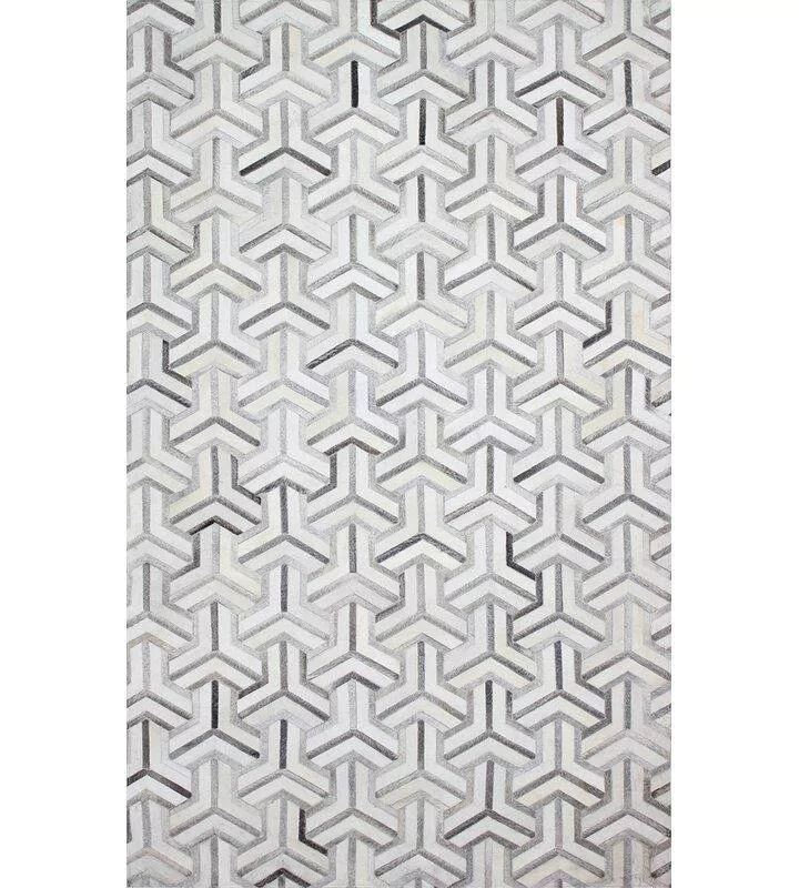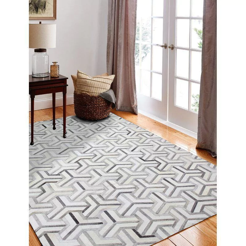 Tapete de Couro confeccionado com recortes geométrico de couro legítimo natural em tons de cinza e offwhite. Tapete forrado, antiderrapante e com tratamento especial para decoração.