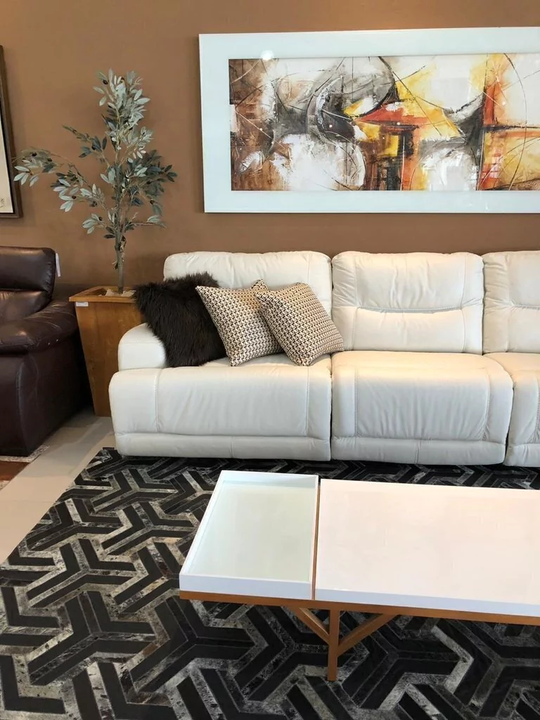 Tapete de Couro confeccionado com recortes geométrico de couro legítimo natural em tons saltpepper preto, preto, bege e cinza. Tapete forrado, antiderrapante e com tratamento especial para decoração.