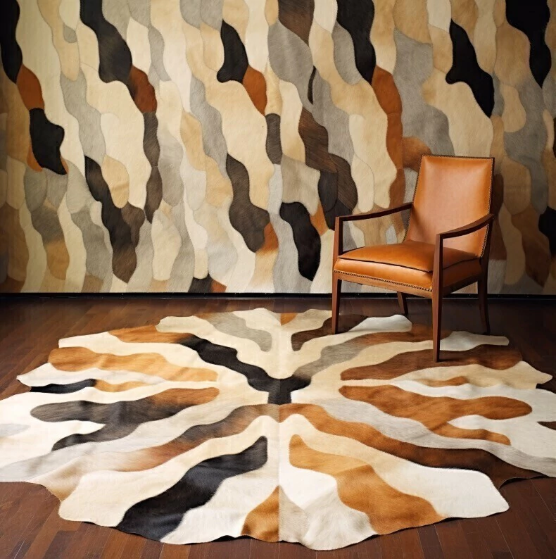 Os tapetes organicos da Woods são confeccionados sob medida a partir de recortes à mão de couro bovino legítimo. Cada peça é unida individual e montada como um quebra-cabeça. Um trabalho com design único e personalizado, podendo variar cores e formatos.