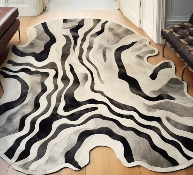Os tapetes organicos da Woods são confeccionados sob medida a partir de recortes à mão de couro bovino legítimo. Cada peça é unida individual e montada como um quebra-cabeça. Um trabalho com design único e personalizado, podendo variar cores e formatos.