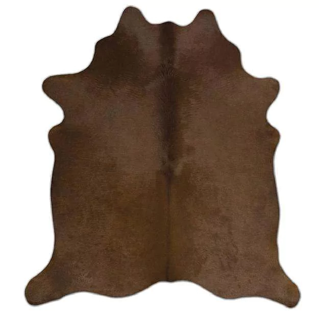 Tapete de couro de boi marrom sólido. Formato de pele inteira e qualidade exportação. Peles com tratamento especial para decoração. Não retém e não transmite odores.