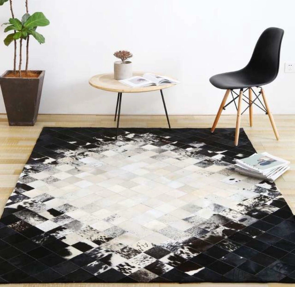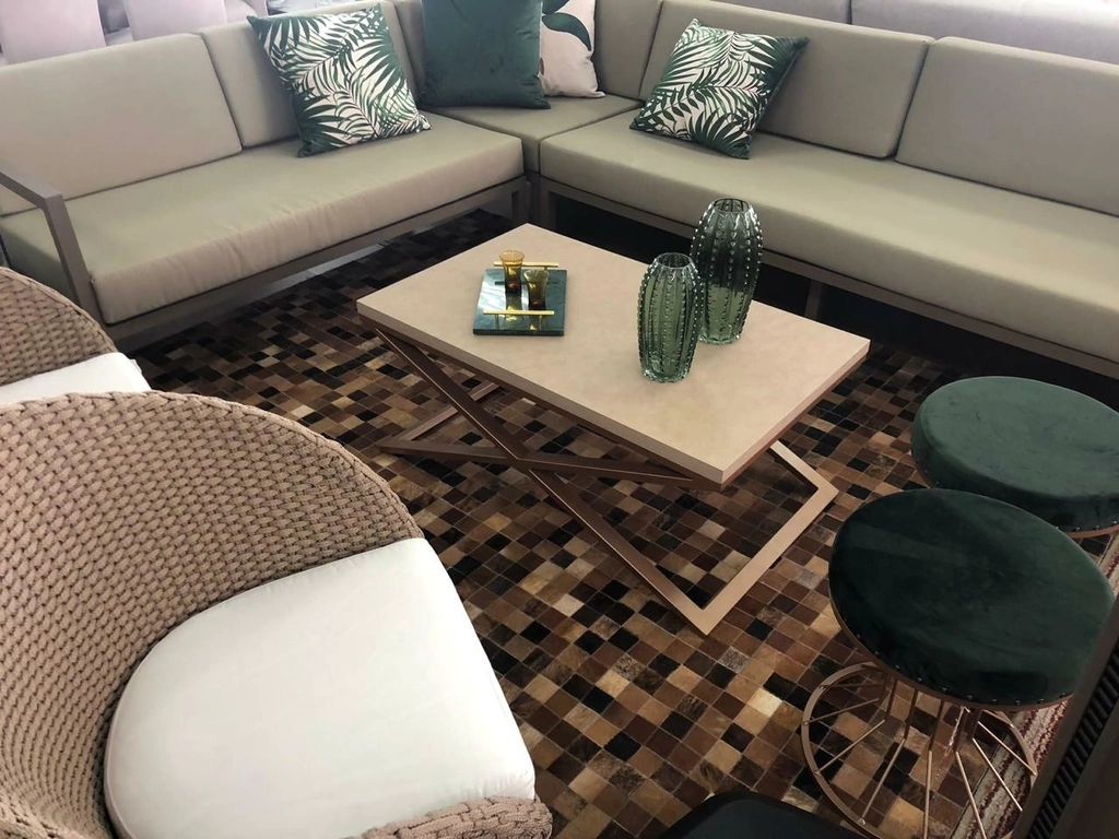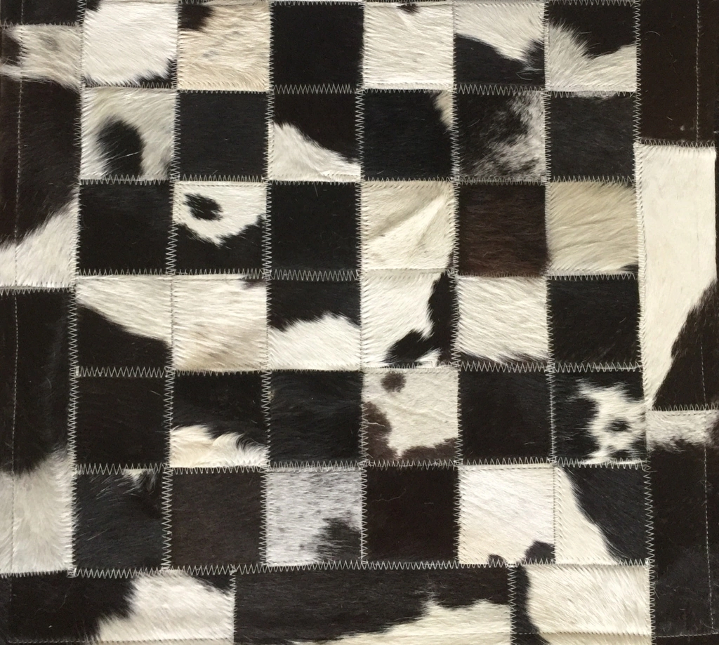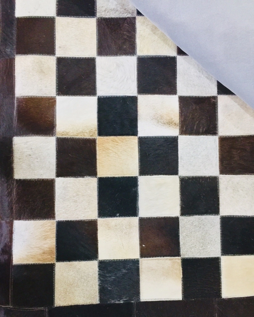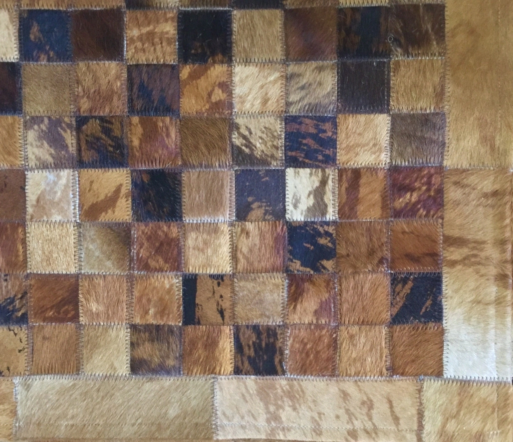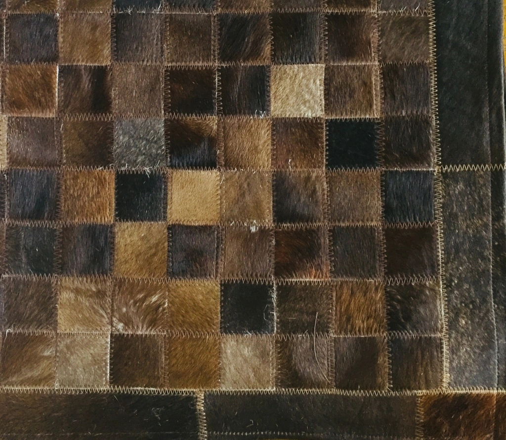 Tapete de couro confeccionado com recortes quadrados de couro legítimo natural.