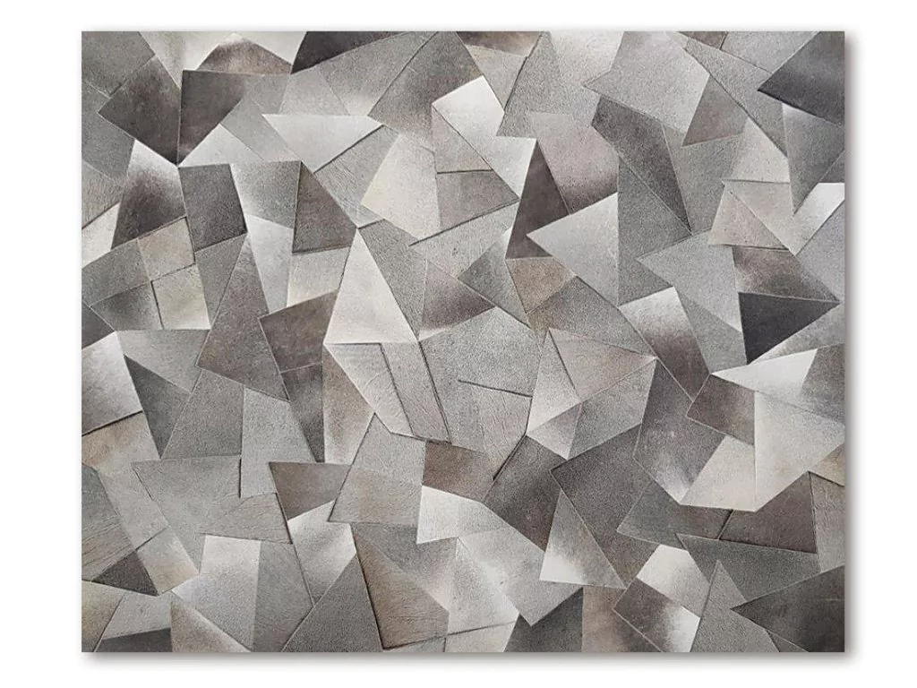 Tipo: Tapete de Couro Coleção: Premium | Freehand Modelo: Belarus Material: Couro bovino natural Ambientes Recomendados: Quarto, Sala de estar, sala de jantar Tamanho (LxC): Sob Medida (Compre agora sob medida - Whatsapp) Padrão do Recorte: Geométrico Peso: ~2kg/m2 Espessura: 5mm Costuras: Zig-zag Forro: Sim Material do Forro: Carpete 100% polipropileno / antiderrapante nas laterais Tons de Cores: Tons de Cinza.