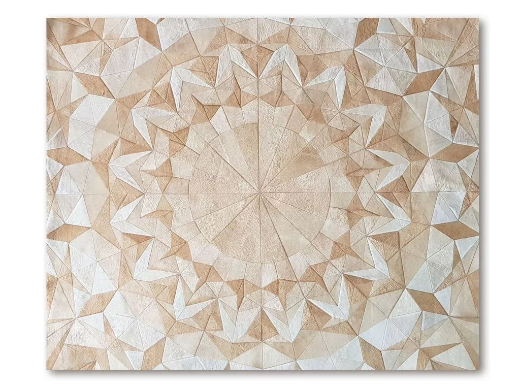 Tipo: Tapete de Couro Coleção: Premium | Freehand Modelo: Cusco Material: Couro bovino natural Ambientes Recomendados: Quarto, Sala de estar, sala de jantar Tamanho (LxC): Sob Medida (Compre agora sob medida - Whatsapp) Padrão do Recorte: Geométrico Peso: ~2kg/m2 Espessura: 5mm Costuras: Zig-zag Forro: Sim Material do Forro: Carpete 100% polipropileno / antiderrapante nas laterais Tons de Cores: Tons de Bege Claro.
