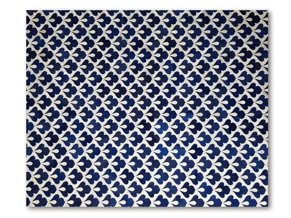 Tipo: Tapete de Couro Coleção: Premium | Freehand Modelo: Montserrat Material: Couro bovino legítimo tingido em cores Ambientes Recomendados: Quarto, Sala de estar, sala de jantar Tamanho (LxC): Sob Medida (Compre agora sob medida - Whatsapp) Padrão do Recorte: Geométrico Peso: ~2kg/m2 Espessura: 5mm Costuras: Zig-zag Forro: Sim Material do Forro: Carpete 100% polipropileno / antiderrapante nas laterais Tons de Cores: Tingimento em tons de azul e creme.