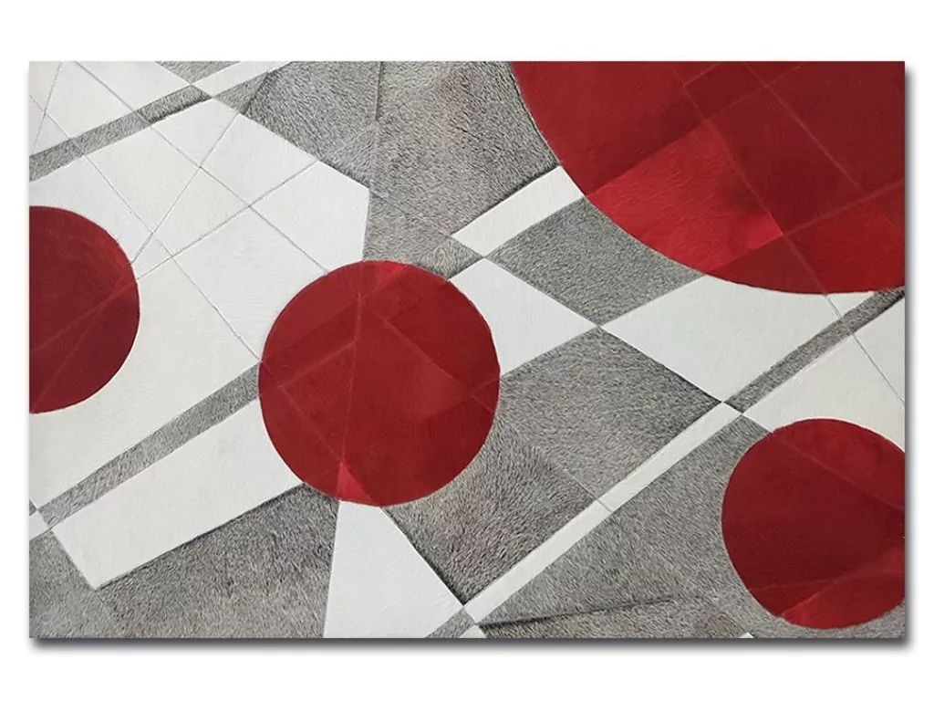 Tipo: Tapete de Couro Coleção: Premium | Freehand Modelo: Santiago Material: Couro bovino legítimo tingido em cores Ambientes Recomendados: Quarto, Sala de estar, sala de jantar Tamanho (LxC): Sob Medida (Compre agora sob medida - Whatsapp) Padrão do Recorte: Geométrico Peso: ~2kg/m2 Espessura: 5mm Costuras: Zig-zag Forro: Sim Material do Forro: Carpete 100% polipropileno / antiderrapante nas laterais Tons de Cores: Tingimento em tons de vermelho, branco e cinza
