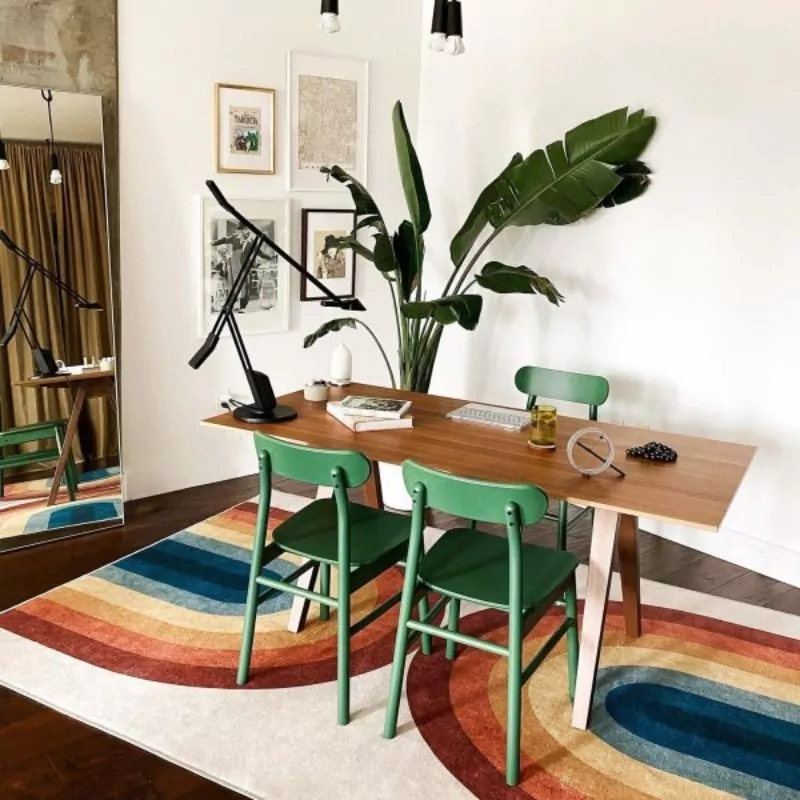 Limpeza e Manutenção: o tapete pode ser limpo com um aspirador, uma escova de cerdas macias ou pode ser lavado diretamente com água. Secar o tapete ao sol geralmente é eficaz e prolonga a vida útil do tapete.