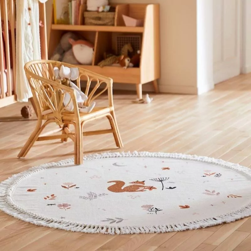 Tapete Infantil Redondo confeccionado em poliester com pelo alto e estampas decorativas lindas e divertida. Com boa espessura ideal para bebês recém nascidos brincarem e antiderrapante na base evita deslizamento. Excelente isolante térmico e acústico com alta retenção a umidade. Fácil limpeza podendo ser lavado à mão ou máquina.